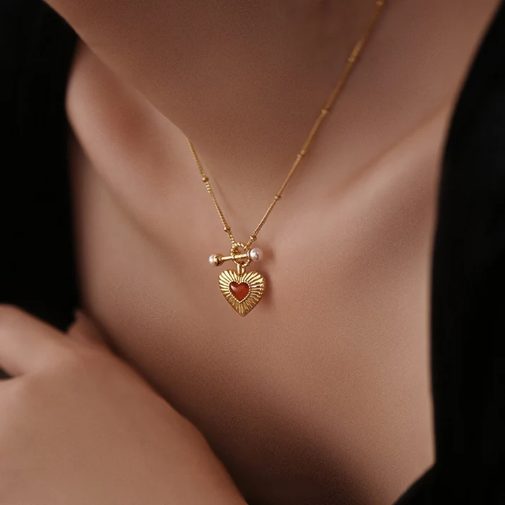 تألقي بجاذبية لا تقاوم مع طقم القلب الأحمر المصمم لإبراز جمالك وأنوثتك. مزيج مثالي من التصميم الراقي والتفاصيل الفريدة يجعل هذا الطقم خيارًا مثاليًا لإطلالاتك اليومية والمناسبات الخاصة.